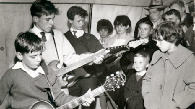 Il était rarement vu sans son meilleur ami George Underwood. Avec lequel il se part un band, George & The Dragons. Sans le choisir, David est ses amis profitent d'un changement politique important. Il n'est plus obligatoire de faire son service militaire, jeune adulte., en Angleterre. Et dans le parcours scolaire, deux branches se dessinent clairement, la branche ouvrière et celle des arts. Laquelle selon vous attire George et David ?Pour n'en nommer que quelques uns, Lennon & McCartney, Pete Townshend, Ray Davies, Keith Richards, Eric Clapton, Jimmy Page et Syd Barrett en seront aussi issus. Owen Frampton, un designer graphique, devient pour David un important allié. Le fils d'Owen, un bon guitariste, Peter, est aussi un ami et un collègue. David se sent valorisé par Owen Frampton qui encourage leur band.Pour la glauque Angleterre, l'Amérique du Nord représente l'exotisme et l'el dorado. Le graal à conquérir. Les Swinging Sixties qui approchent en seront inspirées. Adolescent, il se fait couper les cheveux afin de copier les cheveux de JFK. George et lui adoptent des accents des États-Unis afin d'approcher les filles. David devient même passionné de football des États-Unis. David aimait les États-Unis pour ce qu'ils étaient mais aussi pour tout ce qu'ils rejetaient. Les Beatnicks, les noirs, la musique des noirs. David est subversif. James Dean est une idole pour lui et son frère. Ce dernier l'initie à la beat generation et Jack Kerouac. L'intéresse au bouddhisme et à la méditation. Par Terry, David recoit le type d'éducation qu'il n'a pas à l'école. Il l'introduit au monde extérieur. Et intérieur. Il lui fait lire On The Road de Kerouac. David définit ce moment comme épiphanique. Si on arrivait pas à sortir de la grisaille de Bromley, On The Road était une option d'évasion.